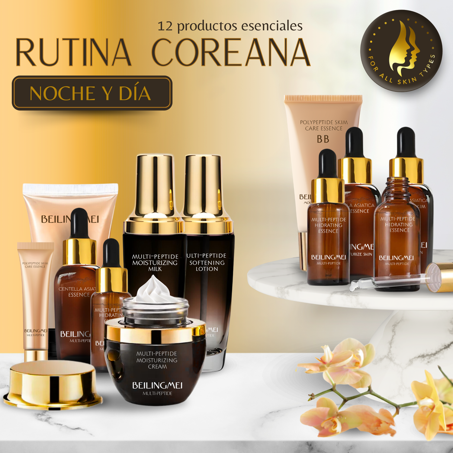 Este completo set de cosmética coreana de 12 piezas ofrece todo lo necesario para una rutina facial de día y noche, hidrata, protege, regenera y combate los signos del envejecimiento.
